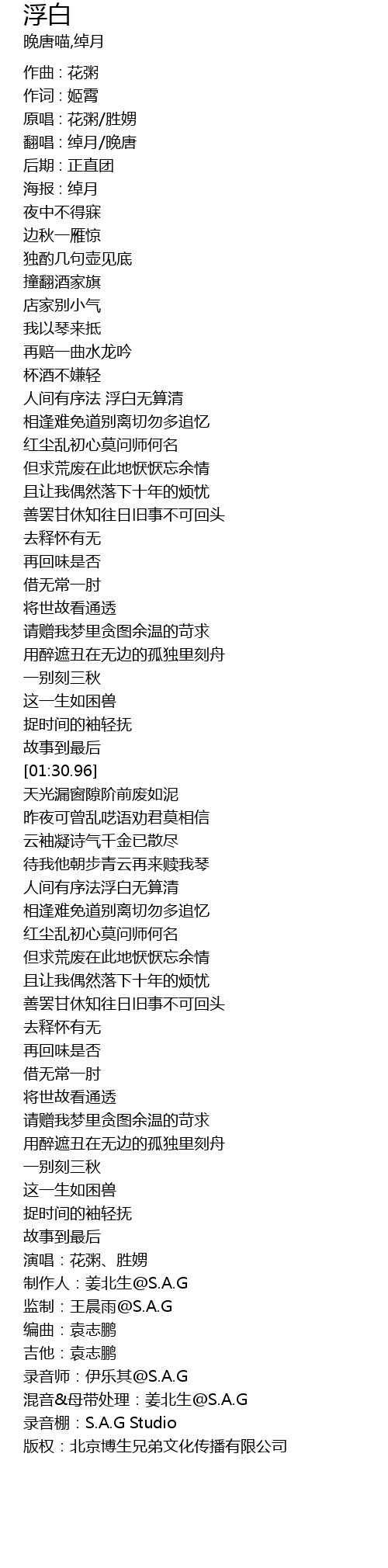 | [03:02.53] | 制作人:姜北生@S.A.G |
