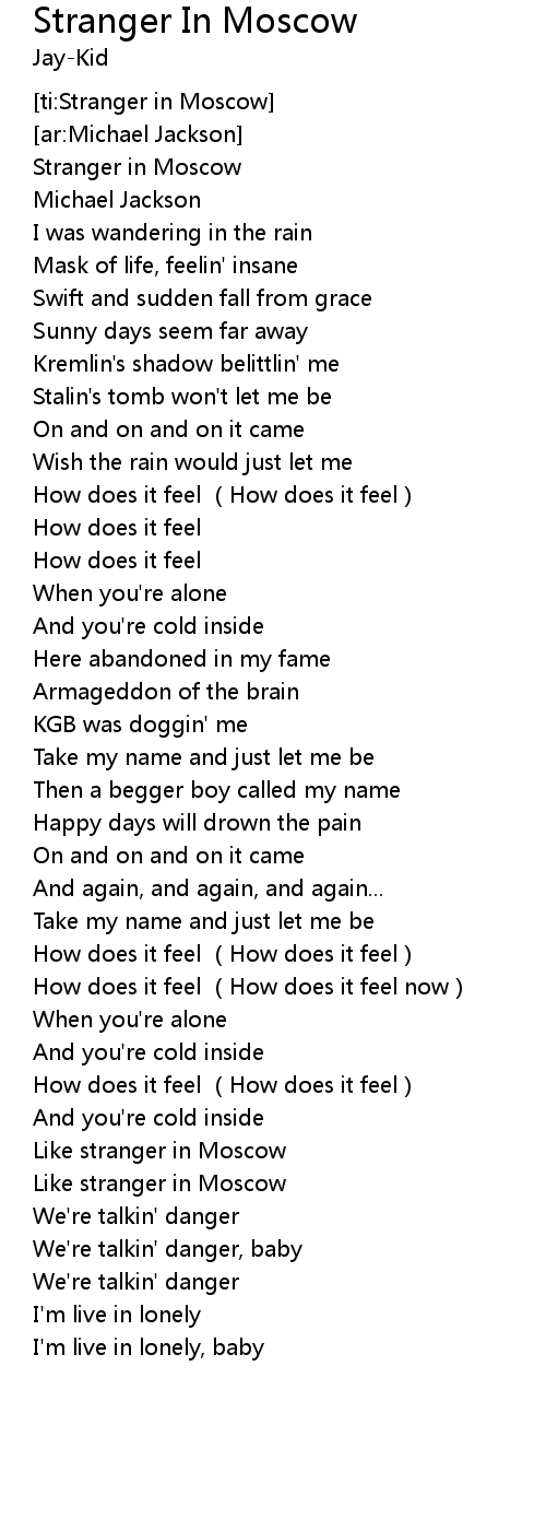 | [00:06.00] | Stranger in Moscow |
