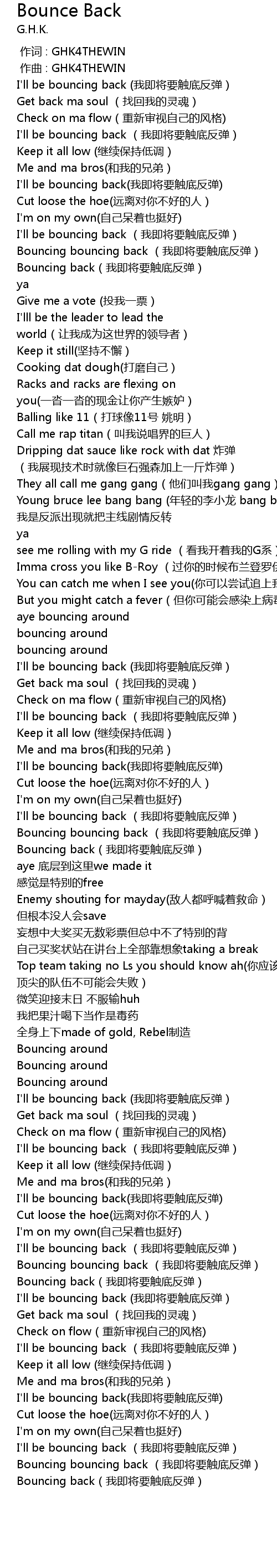 | [02:38.694] | I' ll be bouncing back wo ji jiang yao chu di fan dan |