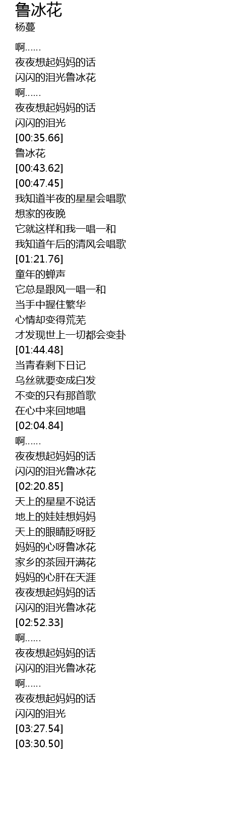 | [02:33.03] | 妈妈的心呀鲁冰花 |