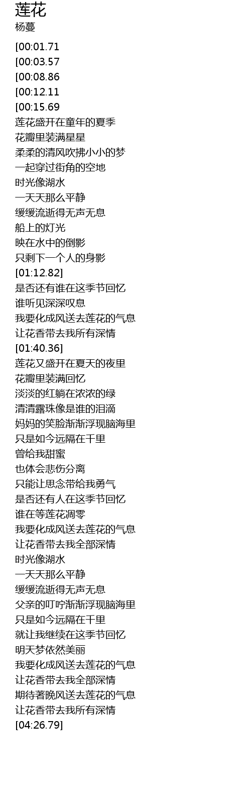 | [00:25.38] | 莲花盛开在童年的夏季 |