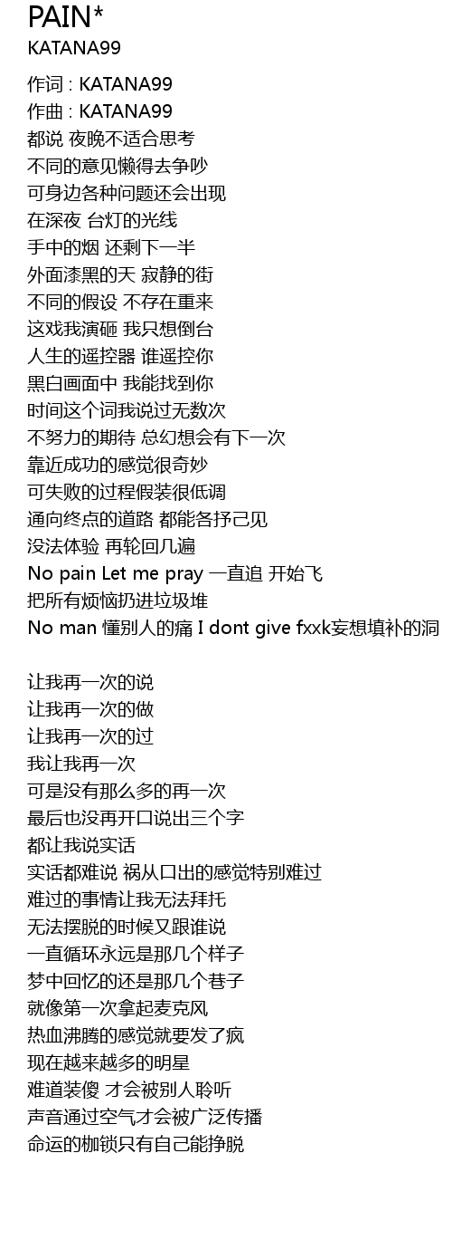 | No pain Let me pray 一直追 开始飞 | |