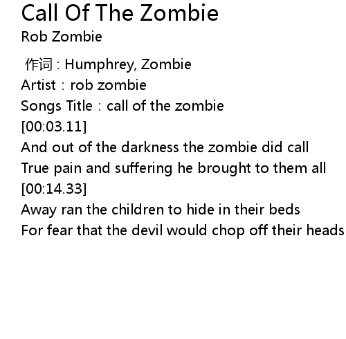 | [00:01.96] | Songs Title:call of the zombie |