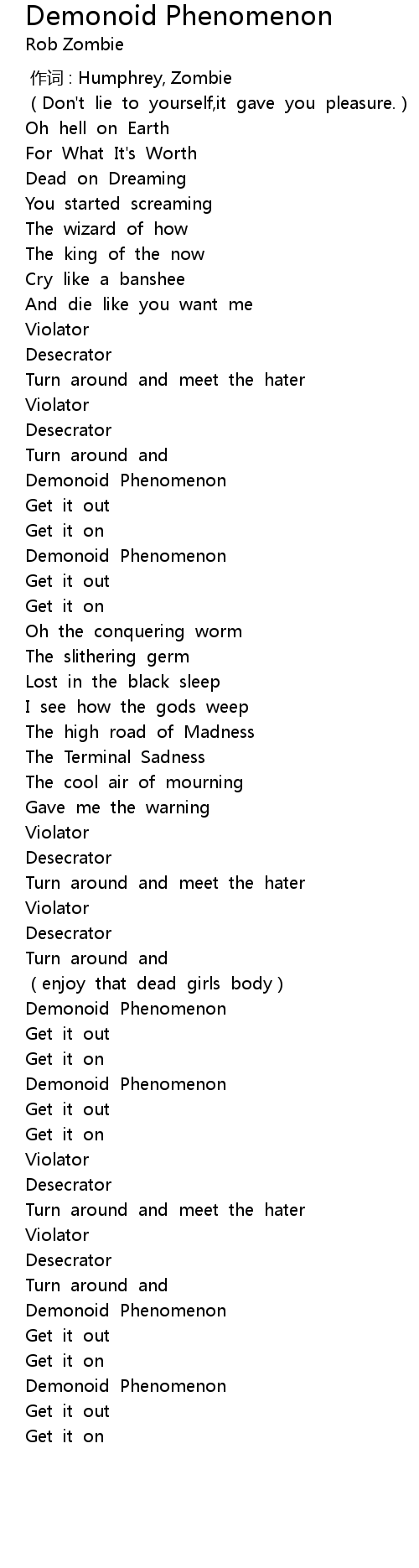 | [00:00.00] | zuò cí : Humphrey, Zombie |