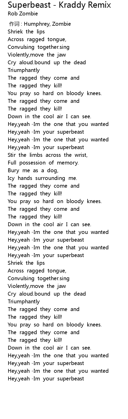 | [01:11.50] | Hey, yeah Im your superbeast |