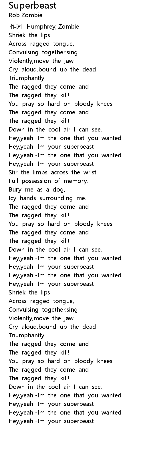 | [01:11.50] | Hey, yeah Im your superbeast |