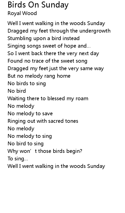 | Song | Birds On Sunday |