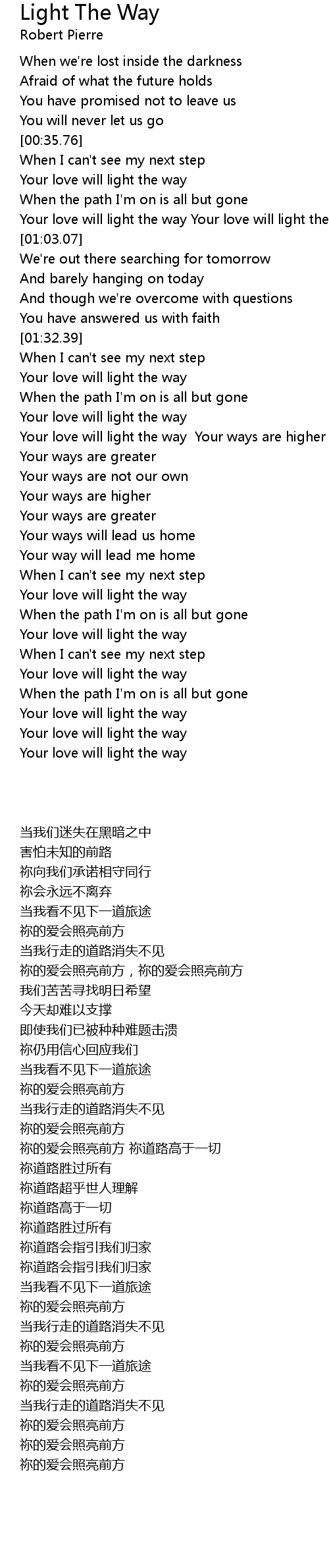Your love will light the way Your love will light the way |