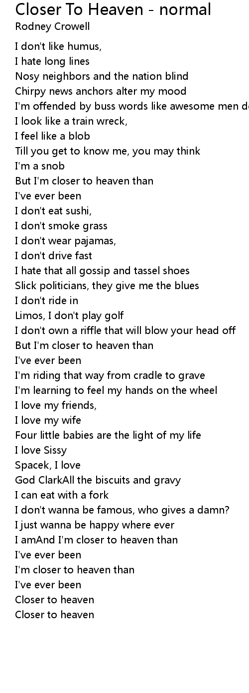 I'm closer to heaven than |