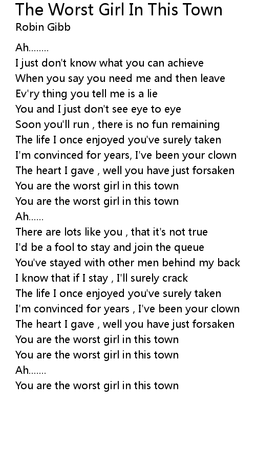 You are the worst girl in this town |