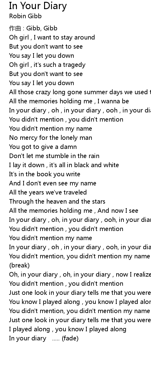 | In your diary , oh , in your diary , ooh, in your diary , whoa | |