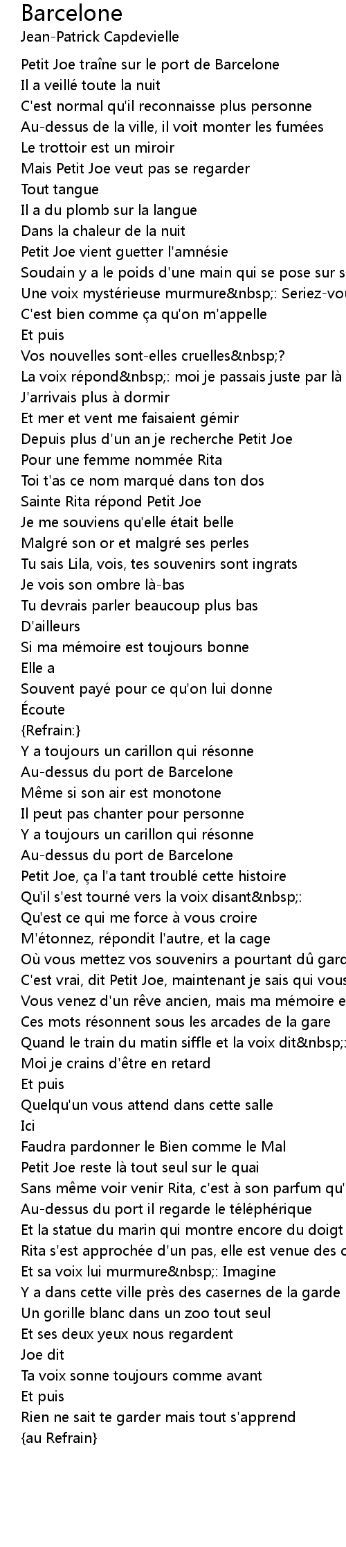 | Song | Barcelone |