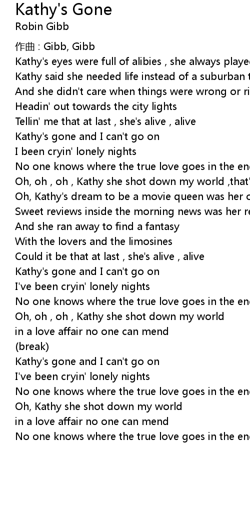 | Kathy' s gone and I can' t go on | |