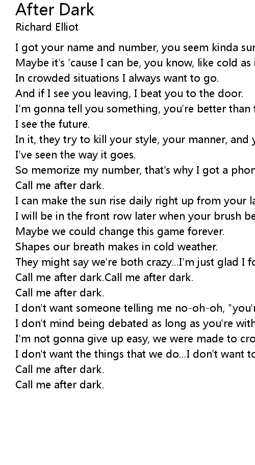 Call me after dark.Call me after dark. |