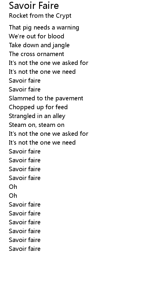 | Song | Savoir Faire |
