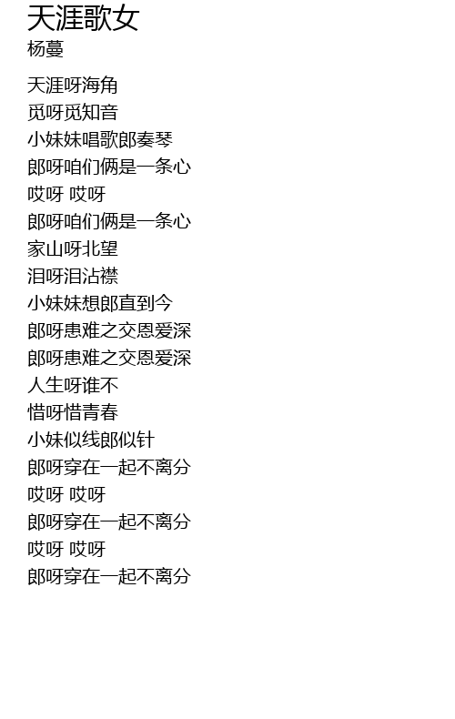 | [00:26.13] | tiān yá ya hǎi jiǎo |