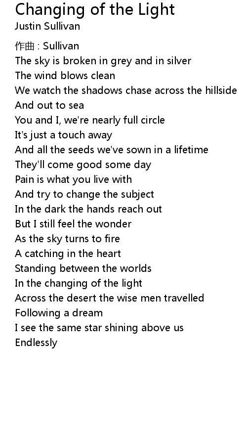 | Song | Changing of the Light |