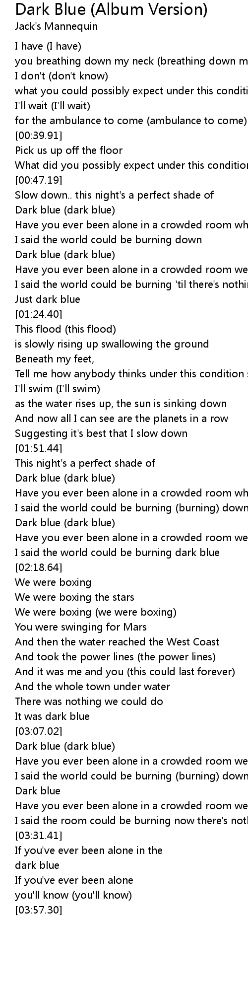 I said the room could be burning now there's nothing but dark blue |