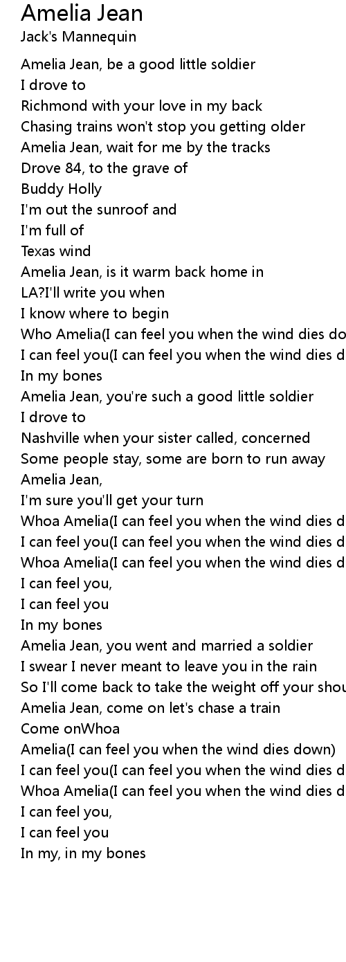 Whoa Amelia(I can feel you when the wind dies down) |
