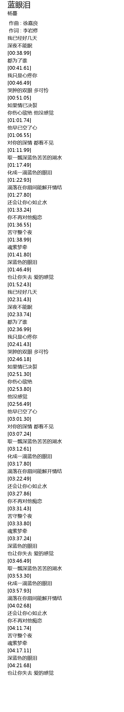 | [03:39.06] | shēn lán sè de yǎn lèi |