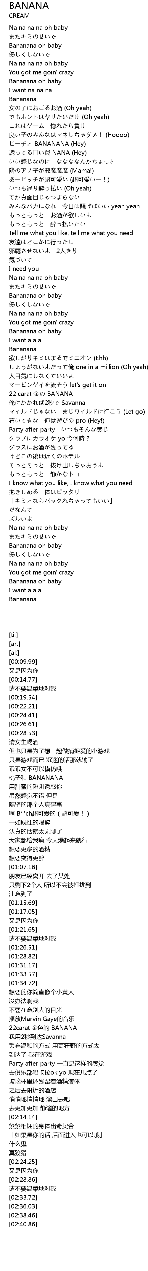 | [01:31.17] | Bananana oh baby |