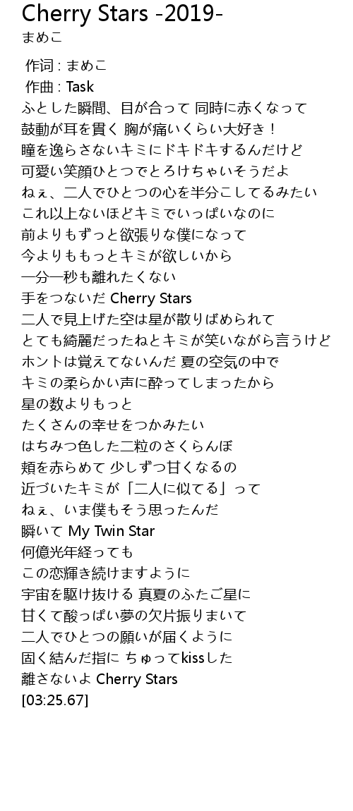 | [03:17.61] | 離さないよ Cherry Stars |