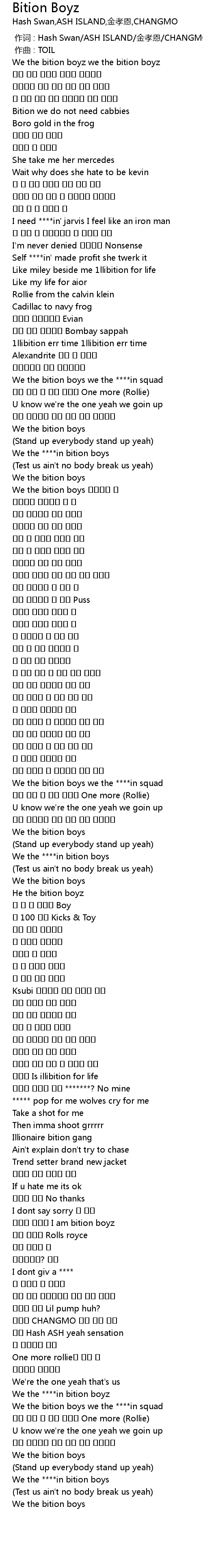 | [01:08.90] | We the bition boys 새끼들아 째 |