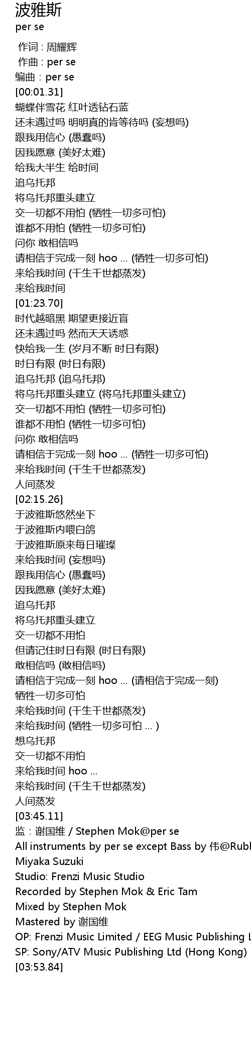 | [03:53.28] | Recorded by Stephen Mok Eric Tam |