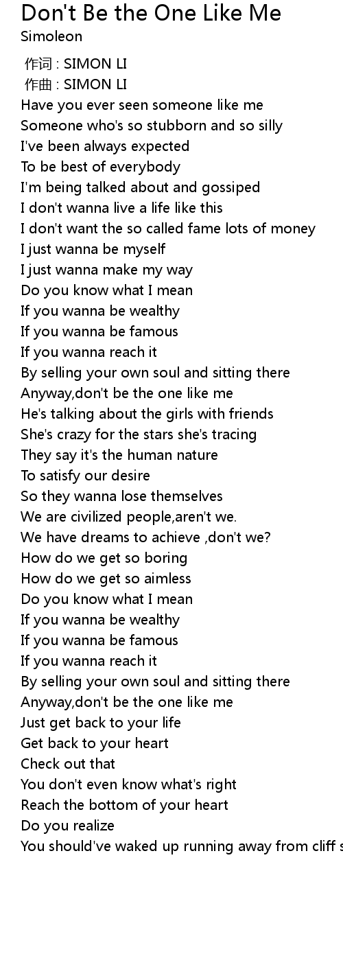 | [01:24.67] | Anyway, don' t be the one like me |