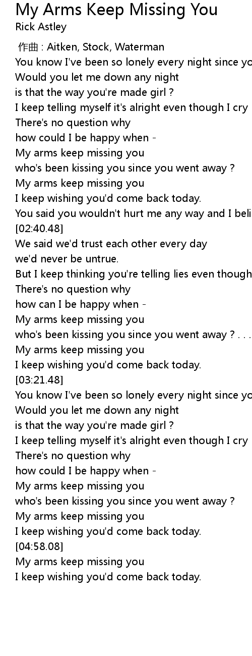 | [04:45.62] | My arms keep missing you |