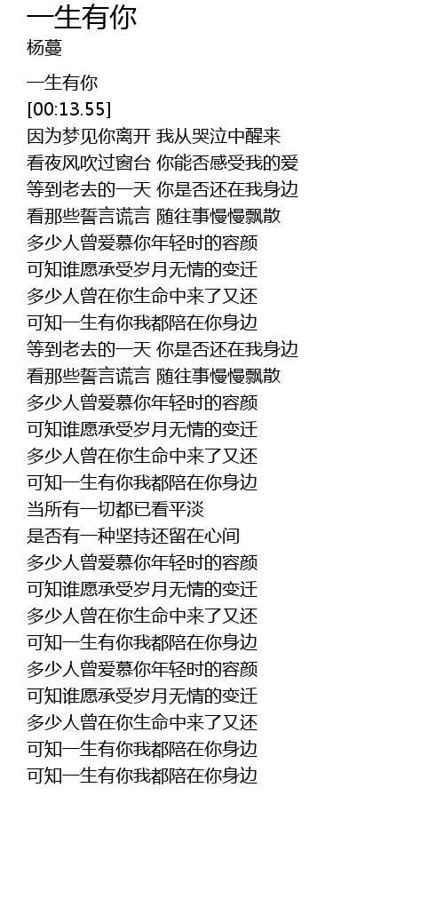 | [02:42.83] | 可知一生有你我都陪在你身边 |