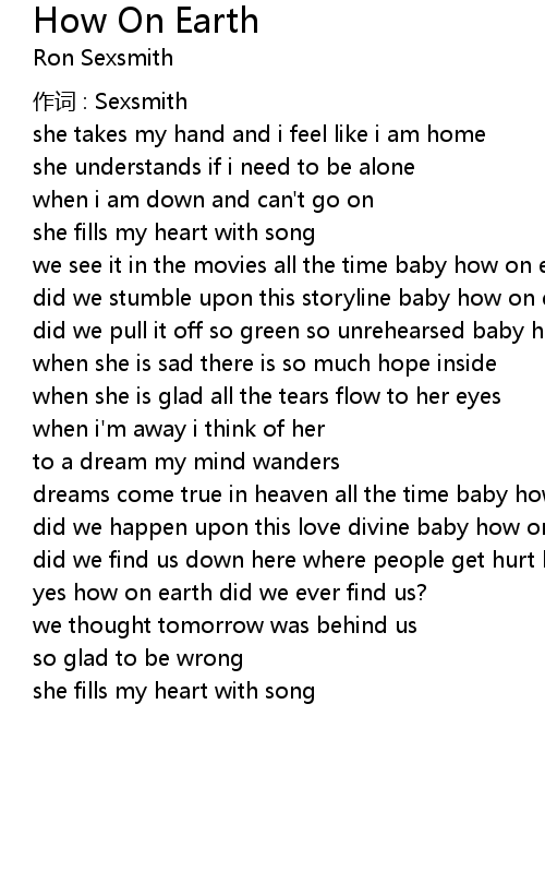 | Song | How On Earth |