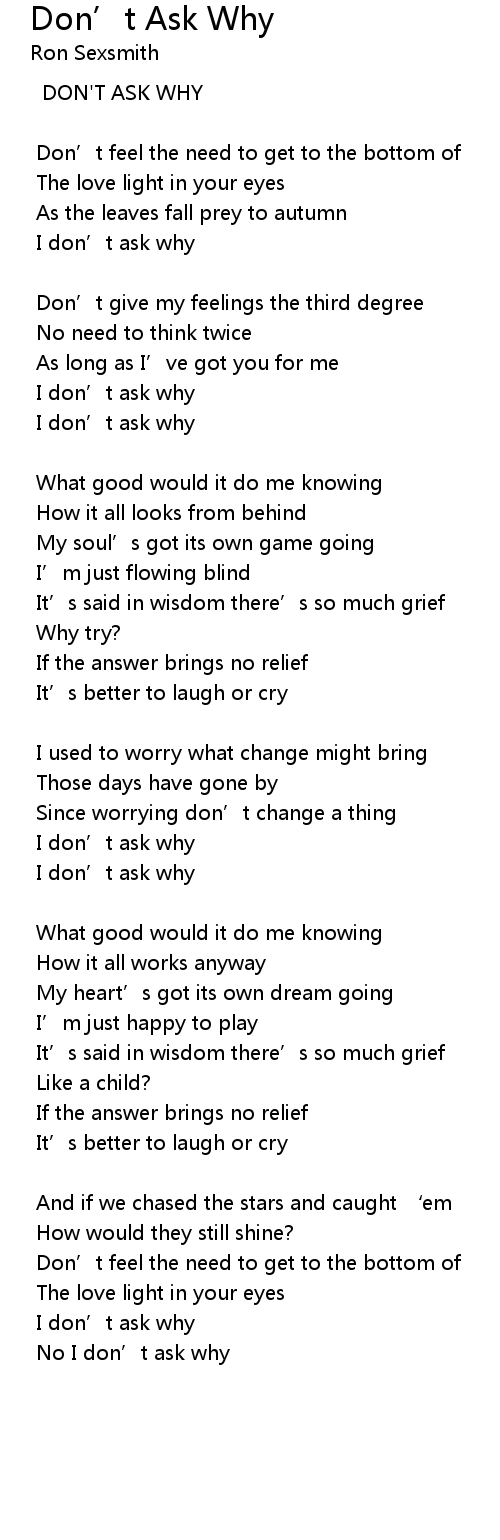 | I don' t ask why | |