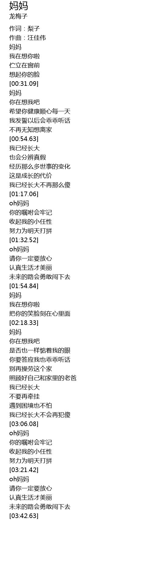 | [03:22.01] | oh妈妈 |