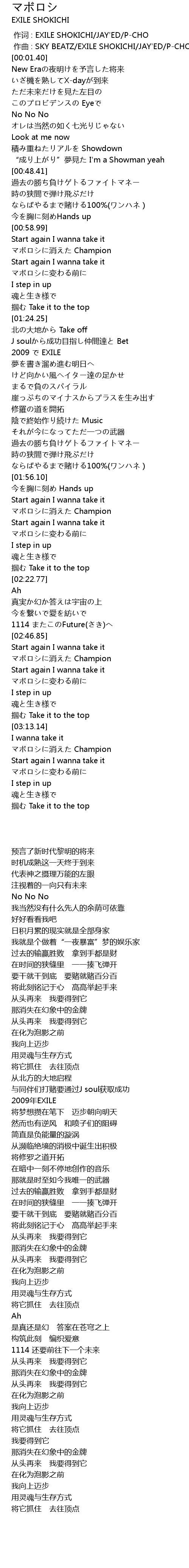 | [00:00.000] | zuo ci : EXILE SHOKICHI JAY' ED PCHO |