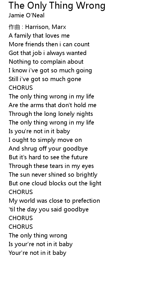 | Song | The Only Thing Wrong |