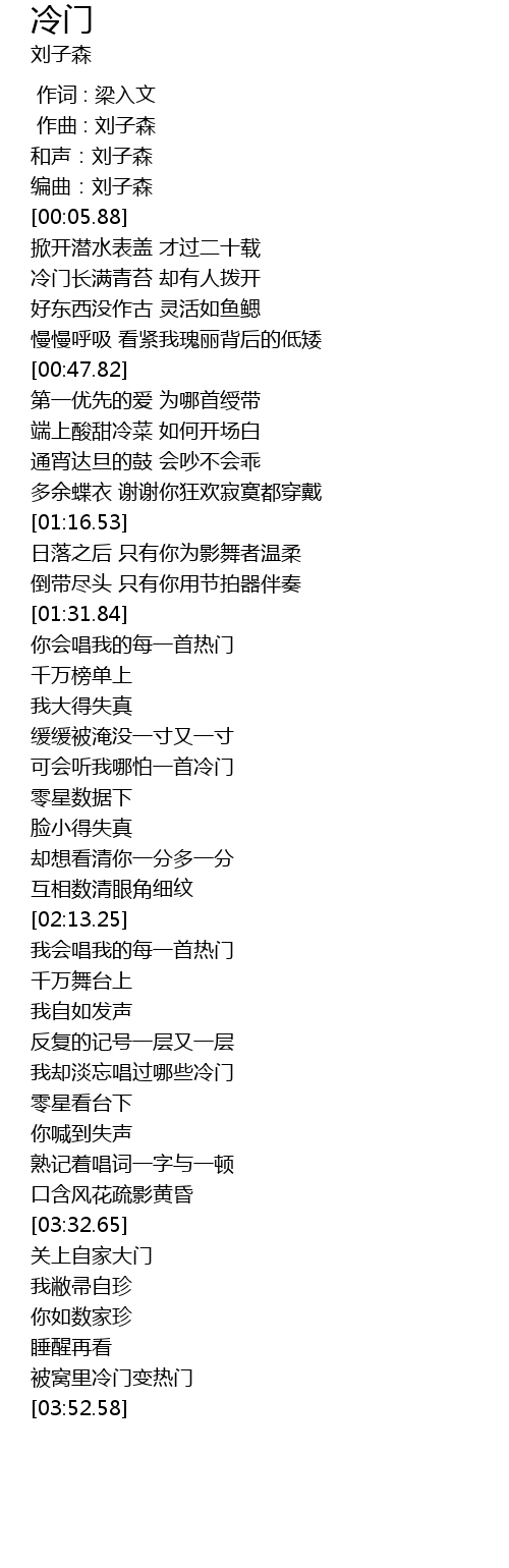 | [01:52.41] | 可会听我哪怕一首冷门 |