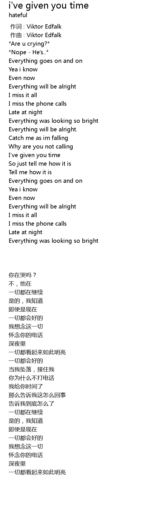 | [00:00.000] | 作词 : Viktor Edfalk |