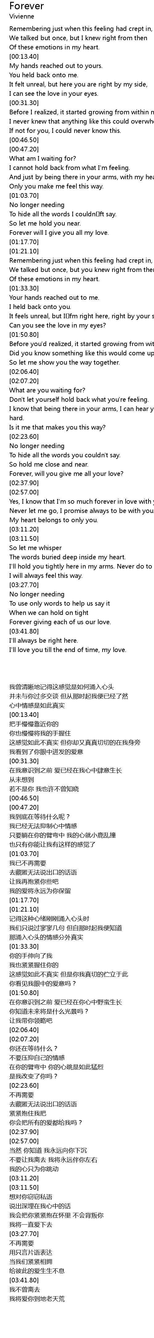 | [02:33.80] | Forever, will you give me all your love? |