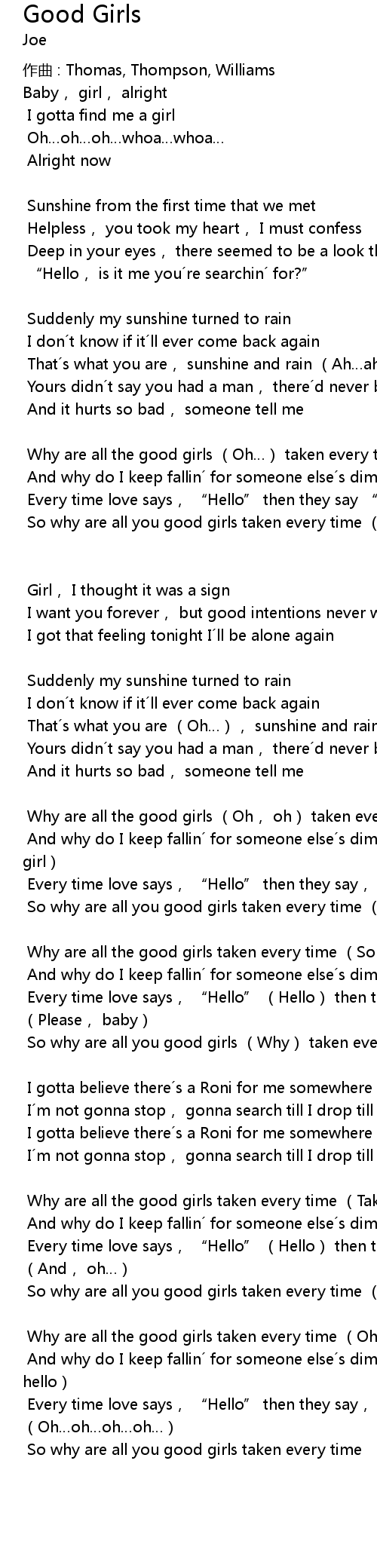 | Why are all the good girls taken every time (Somebody tell me) | |