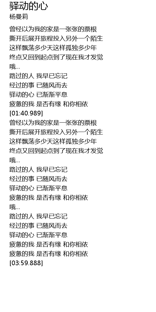 | [02:58.88] | 驿动的心 已渐渐平息 |