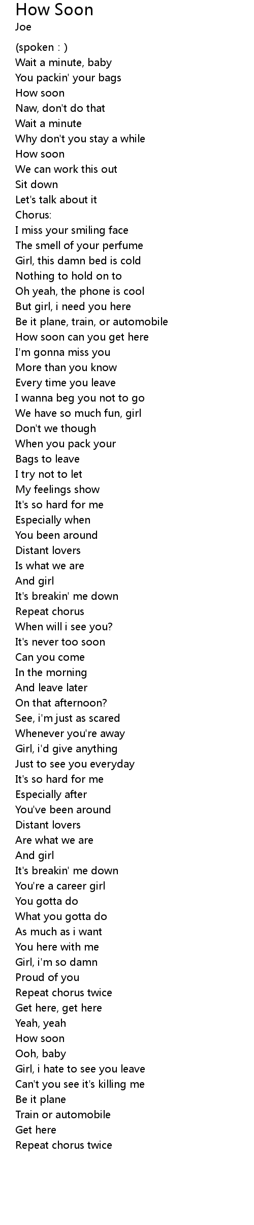| Song | How Soon |
