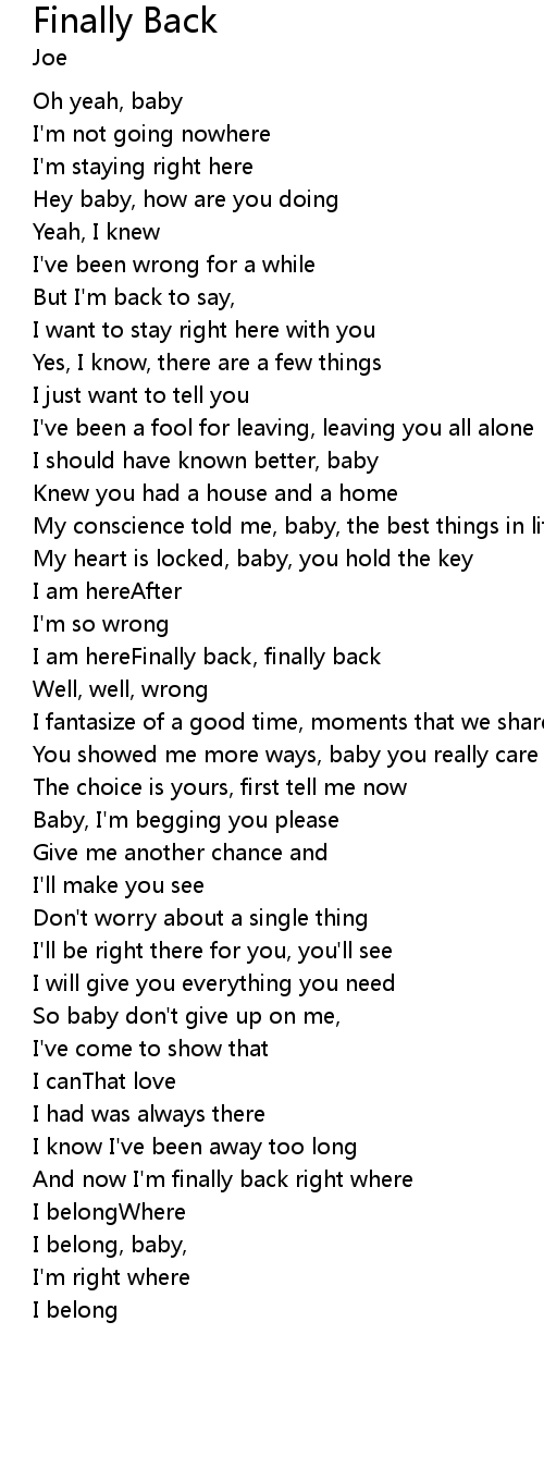 I am hereFinally back, finally back |