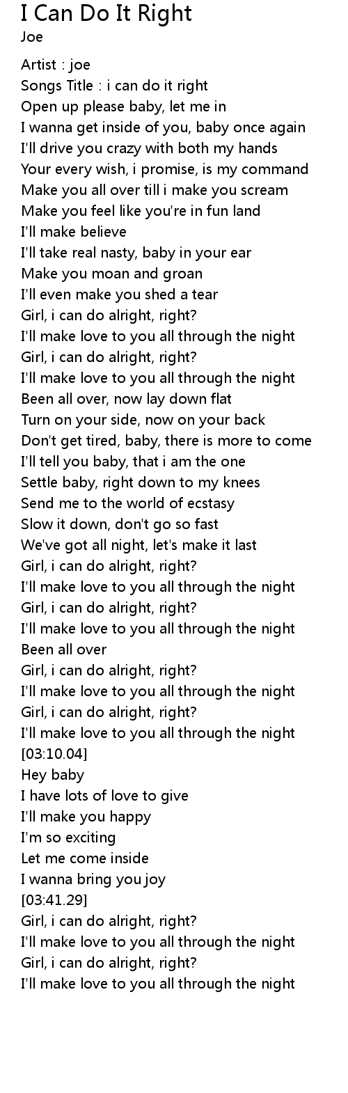 | [02:59.30] | Girl, i can do alright, right? |