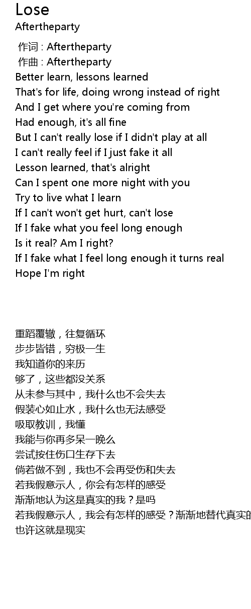 | [00:01.000] | zuò qǔ : Aftertheparty |