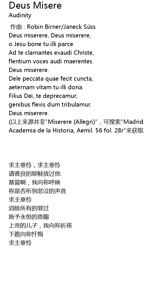 | [02:49.88] | (以上来源并非"Miserere (Allegri)",可搜索"Madrid. Real Academia de la Historia, Aemil. 56 fol. 28r"来获取原文) |