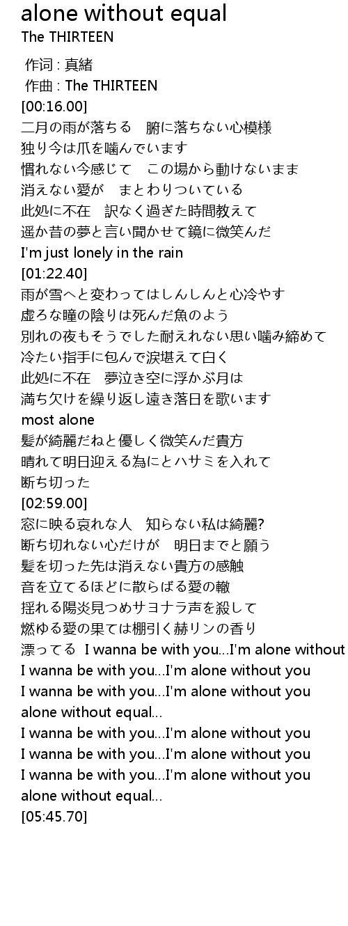 | [05:04.20] | 漂ってる I wanna be with you…I'm alone without you |