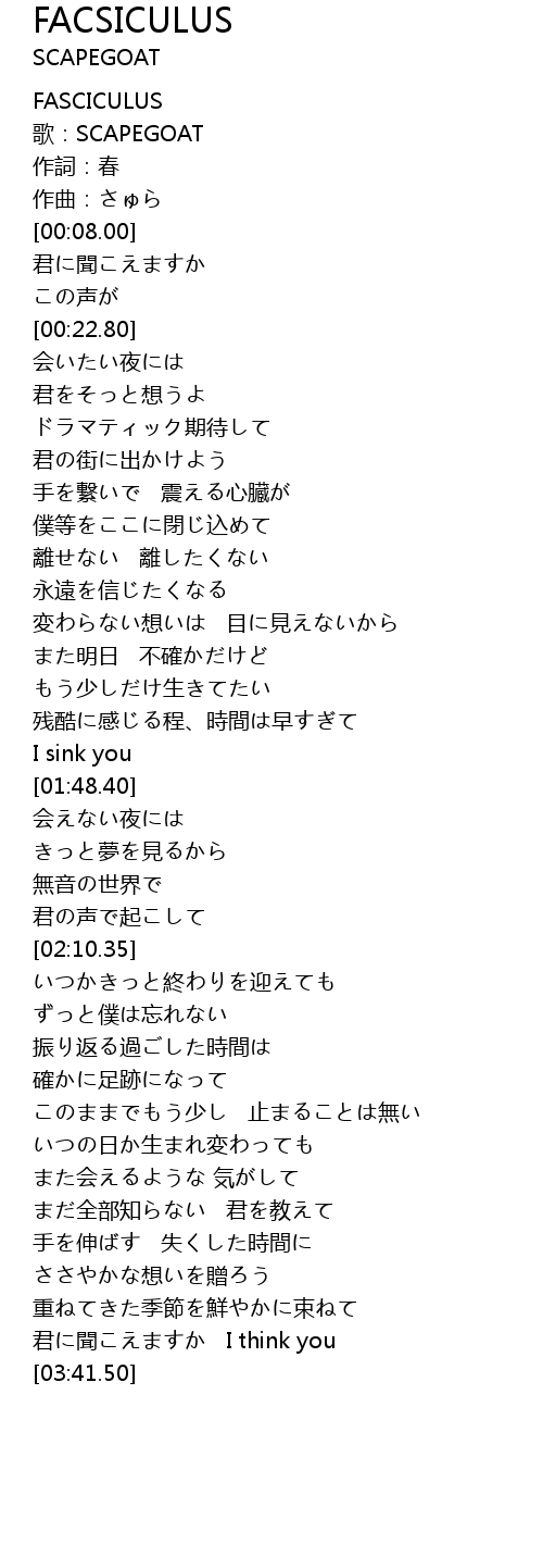 | [00:02.00] | 歌:SCAPEGOAT |