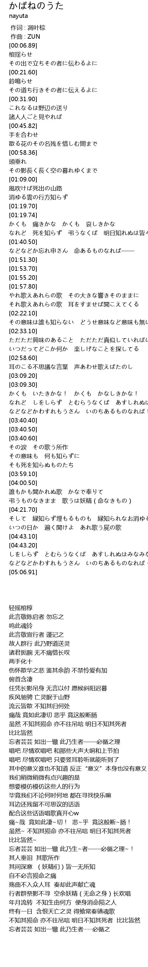 | [04:53.62] | などなどかわすれもうさん いのちあるものなれば・・・ |
