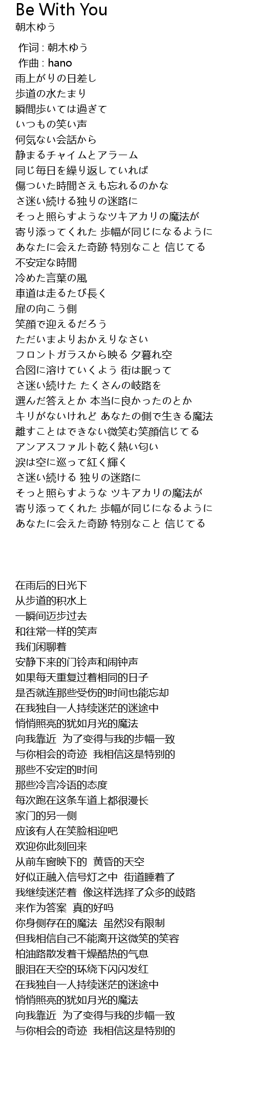 作词 : 朝木ゆう |